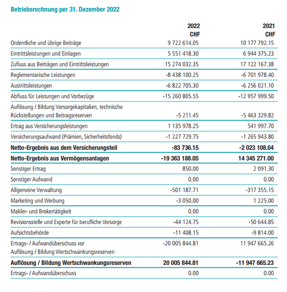 Betriebsrechnung per 31.12.2022