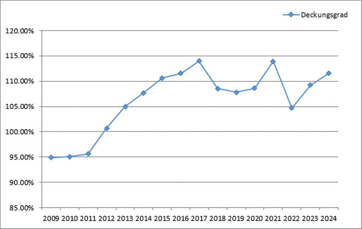 Der Deckungsgrad beträgt per 31.12.2024 112.00 %.